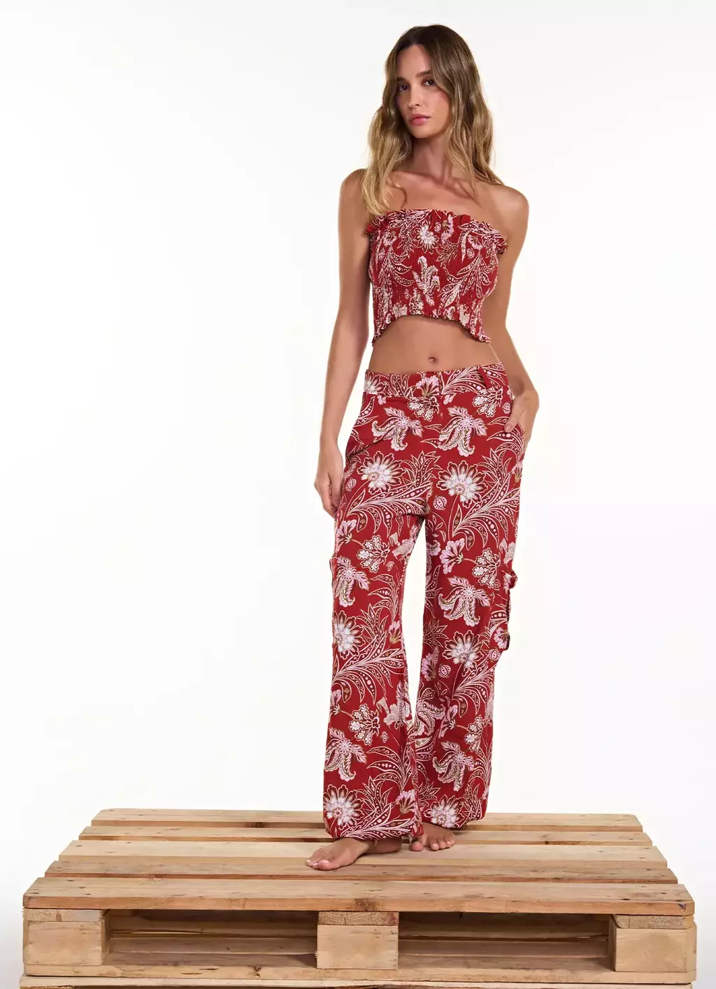A calça estampa floral Verão 2026 traz modernidade. Sua modelagem de cintura média com, cós com passantes permite o uso com cinto como cintura alta, adaptando-se ao estilo de cada ocasião.