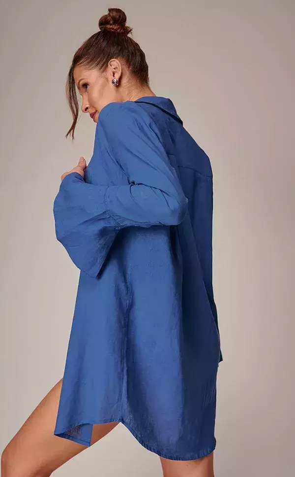 Chemise confeccionada em Cambraia de linho na cor azul lunar. O ponto forte dessa peça está nos punhos, no formato de sinos, trazendo delicadeza e sofisticação a peças para um dia a dia especial. Possui botões para fechamento na frente.