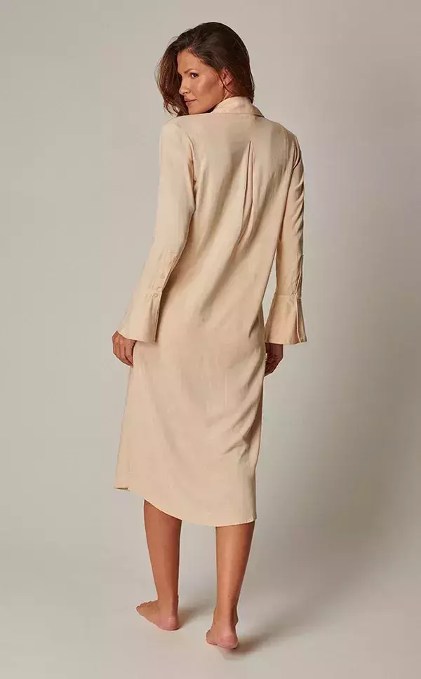 Chemise com manga longa e punhos sino. Possui fechamento frontal por botões. Combine a Chemise longa o body curve mascarpone Perla para um look beachwear sofisticado.