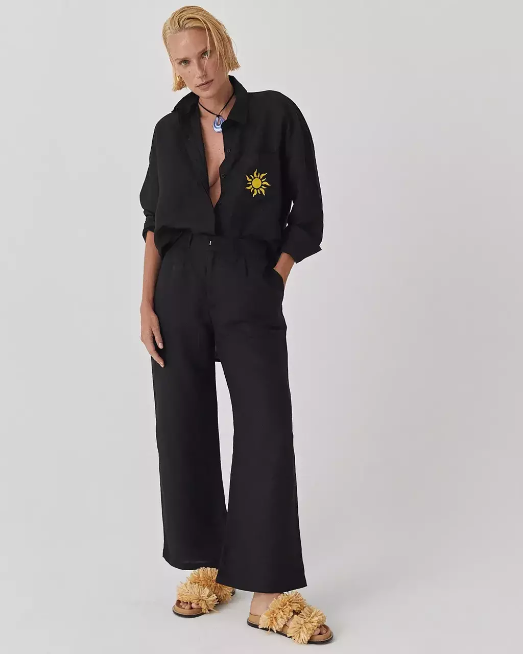 Pantacourt estilo alfaiataria, com comprimento descolado e confortável. Bolsos nas laterais, leve drapeado que finaliza com charme essa peça Must-Have. Desenvolvida no linho, sofisticado e atemporal.